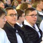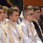 Obchody Dnia Lektora rozpoczęły się od spotkania w Wyższym Seminarium Duchownym Diecezji Bydgoskiej. Błogosławieństwo do pełnienia funkcji lektora otrzymało 65 osób, w tym dwóch ministrantów z naszej parafii Marcin i Piotr Pastuszakowie. Natomiast ceremoniarzami ustanowiono 41 osób, wśród których byli również nasi przedstawiciele służby liturgicznej: Kamil Śliwa i Stanisław Włodarczyk. Wszyscy kandydaci uczestniczyli w specjalnych kursach – lektorzy w ramach swoich dekanatów, a ceremoniarze – w seminarium, kończąc swoją formację egzaminem. Kamil ze Stasiem (zachęceni przez księdza proboszcza Macieja Andrzejewskiego) uczestniczyli w kursie od października 2018r. i przez rok przygotowywali się do dzisiejszej nominacji. Na znak przyjętej funkcji otrzymali krzyże, które odtąd będą nosić na albie a także specjalne legitymacje ceremoniarza Liturgicznej Służby Ołtarza Diecezji Bydgoskiej.