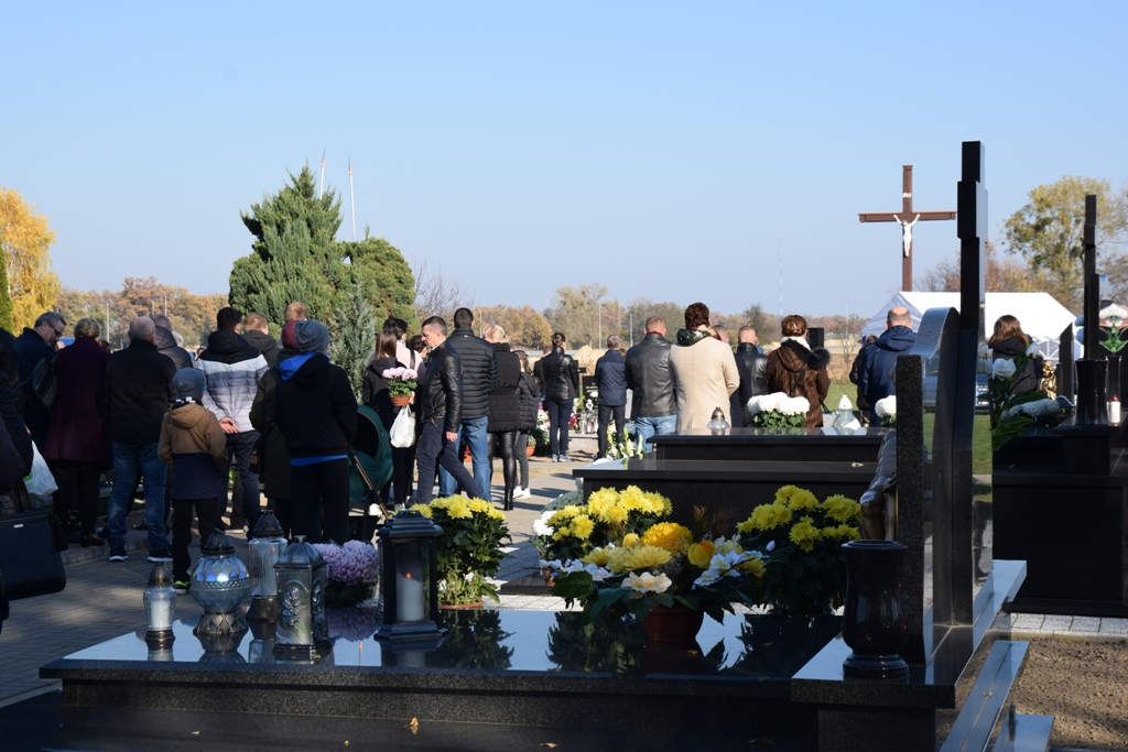 1 listopada w Uroczystość Wszystkich Świętych jedna z trzech Mszy Świętych sprawowana była przez księdza proboszcza na naszym cmentarzu. Eucharystia rozpoczęła się o 11:30 i zakończyła procesją z modlitwą różańcową za zmarłych, a szczególnie założyciela naszej parafii śp. ks. infułata Stanisława Grunta.