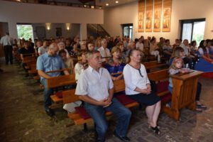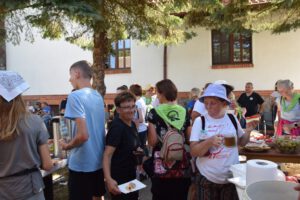 13 sierpnia odbyliśmy pielgrzymkę do Topolna, gdzie znajduje się Sanktuarium NMP Uzdrowienia Chorych. Podjęliśmy ten trud, niosąc różne intencje: o pokój na świecie i w naszej ojczyźnie, nawrócenie grzeszników, intencje wspólnotowe i osobiste… Pielgrzymując, spędziliśmy ten sobotni dzień nie tylko aktywnie, ale przede wszystkim, aby zamanifestować naszą wiarę w Boga i miłość do Jego Matki. W czasie drogi śpiewaliśmy i modliliśmy się, odmawiając cały różaniec w odpowiedzi na prośbę Matki Bożej, która 13 maja 1917r. objawiła się trojgu pastuszkom i prosiła: „Odmawiajcie codziennie Różaniec, aby uzyskać pokój dla świata i koniec wojny”. Pielgrzymkę zakończyliśmy Eucharystią w kaplicy u Sióstr Pasterek w Topolnie i wspólnym biesiadowaniem na pięknym terenie należącym do zgromadzenia. Najmłodszy uczestnik miał 4 miesiące, a najstarszy 77 lat.