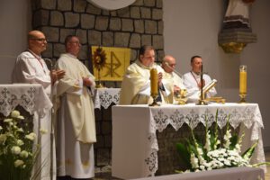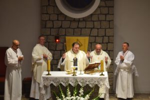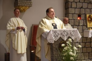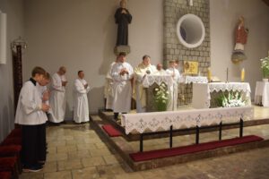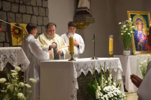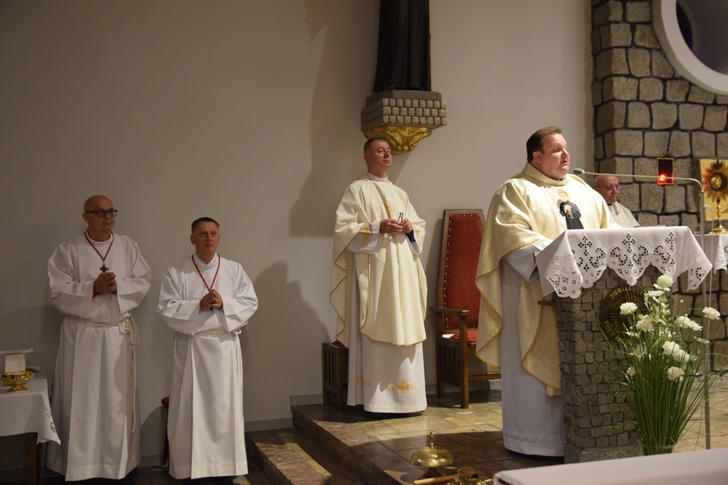 Uroczysta Suma Odpustowa rozpoczęła się o godz. 18.00, a przewodniczył jej ks. Grzegorz Wiciński– proboszcz parafii w Rynarzewie. W wygłoszonej homilii przypomniał zebranym życie naszego patrona. Szczególnie zapamiętamy słowa o byciu dobrym i „dźwiganiu krzyża”. Bowiem bycie dobrym to poddanie się woli Bożej mimo wszelkich trudności, jakie mogą nam się przytrafić. A „dźwiganie krzyża” to nie męczeństwo, ale cierpliwe znoszenie cierpienia, akceptowanie go, co daje prawdziwy pokój duszy.
